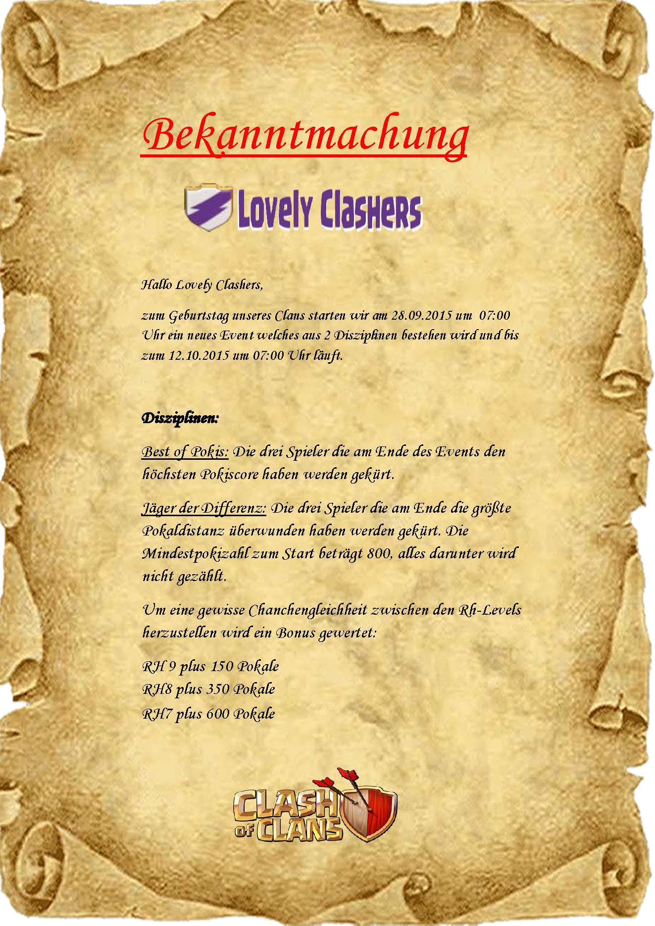 Liebe Lovely Clashers: Ich freue mich auf eine weiterhin schöne und spaßige Zeit mit euch. Danke und auf das nächste Jahr :) Euer Liebchen